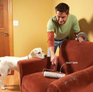 The easiest way to use duct tape is by applying it on a paint roller, keeping the sticky part outside. Just roll the paint roller over your carpet, seats and sofa and all pet hair will stick with the duct tape, leaving your furniture clean. Keep on changing the tape if the furniture is full of hair.